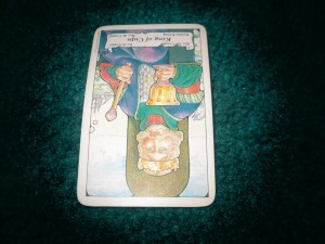 It is worth noting in Jermain’s reading that while shuffling a “Leaper” emerges, this is a card that both signifies the readiness of the deck to “speak” and also will usually pertain to the issue being asked about. It is the Six of Swords, right side up, while the rest of the cards are reversed. This clearly validates Jermain’s feelings of being stuck after a loss. What is interesting to note is that the Leaper, the card which is right side up, is a card of resolution and compromise. The Six of Swords shows a man rowing a boat with a woman and child. There are a number of swords standing on the back of the boat and where the water had been rocky with waves it becomes clear as new horizons approach. This suggests change, loss, compromise, and redirecting thoughts and energy toward new ground. It suggests some defeat, but not of ending. Rather this is a card of cutting losses and moving on- but still being surrounded by loved ones. Whether Jermain faced the loss of property, job, relationship, or the need to take charge in a difficult situation (after all in this card the man is steering, the family are not) it is ultimately a card of moving away from the conflict, the trouble is in the past and the burden is one of readjustment. Numerous changes that likely centered on a few major events were likely to have caused a loss or change of will and some movement on or away from a source of stress, but this would likely have felt like defeat. It was not, it was actually having the wisdom to know when to leave a bad scene and start over. It is the starting over under duress that is often felt as the defeat.