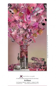 Also, for my San Francisco, CA area readers, might I suggest taking a trip to ArtHaus on 411 Brannan Street? This October, ArtHaus gallerists James Bacchi and Annette Schutz invite you to “Think Before You Pink.” It’s an invitational exhibition exposing the breast cancer “pink industry.” 20% of all exhibition sales will benefit Breast Cancer Action during the month of October.