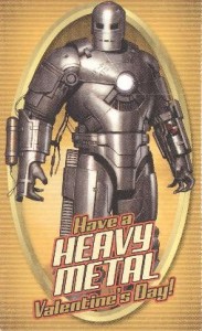 This year’s cards were taking advantage of the Iron Man craze of the previous year. Of course, with a new film on the way timeliness isn’t where the inappropriateness comes from. However, there are many other ways this year’s batch were inappropriate. Firstly, Tony Stark wishing anyone a sincere and cheerful Valentine’s Day is just funny. Next, you have the always super G-rated text that all children’s cards have. That is always a gimme for Valentine inappropriateness. Lastly, these cards did not only have the sleek, red Iron Man from the movie, they also had the chunky, clunky, original suit as well. He hopes you “Have a Heavy Metal Valentine’s Day!”