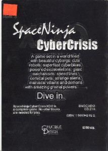 Crucible Design’s game “Space Ninja Cyber Crisis XDO” showed designer Matt Johnson’s role-playing game vision of the future. In fairness, I don’t know how much he felt would actually be coming to pass, and how much was just awesome stuff he gleaned from Anime and Manga. However, what is fascinating is just how much “fantasy” from 1997, when the game was published, is crawling towards reality.