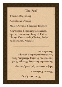 Since I wanted to give you guys the real deal on how Living Magick’s “Tarot Learning Cards” worked I decided to follow the advice on the card about how to use the deck. They suggest that you break the deck down into manageable parts, adding that the Major Arcana is good place to start. I thought that sounded like a good approach so I dedicated November to learning the Major Arcana with the idea that next would be each suit of the Minor Arcana, then the Court cards, and then start over to work on the reversals, as was outlined on the “how to use the deck” card.