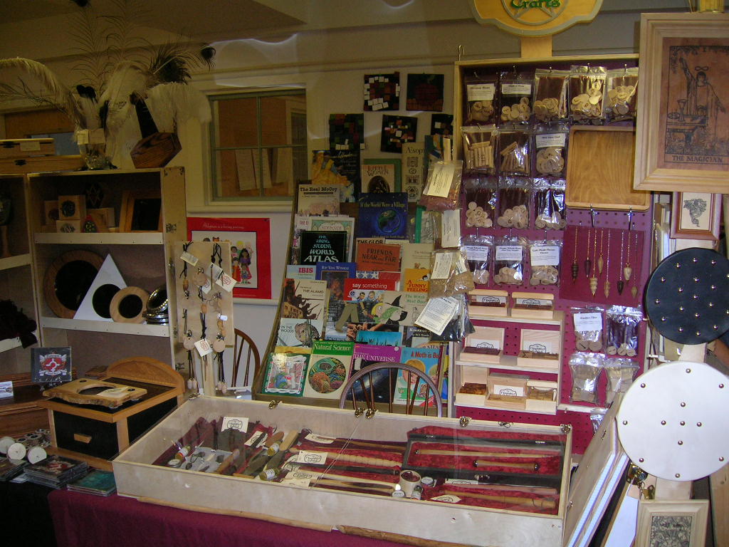 Jim and I visited Mike Dolan at his Haunted Wood Crafts table. As usual he had some fantastic new wands to show off along with a dizzying selection of of runes. The big thing for me was the inclusion of traditional tarot images on wood. By an odd coincidence he had a small framed Hanged Man, and that is my favorite tarot card! So that little guy came home with me!