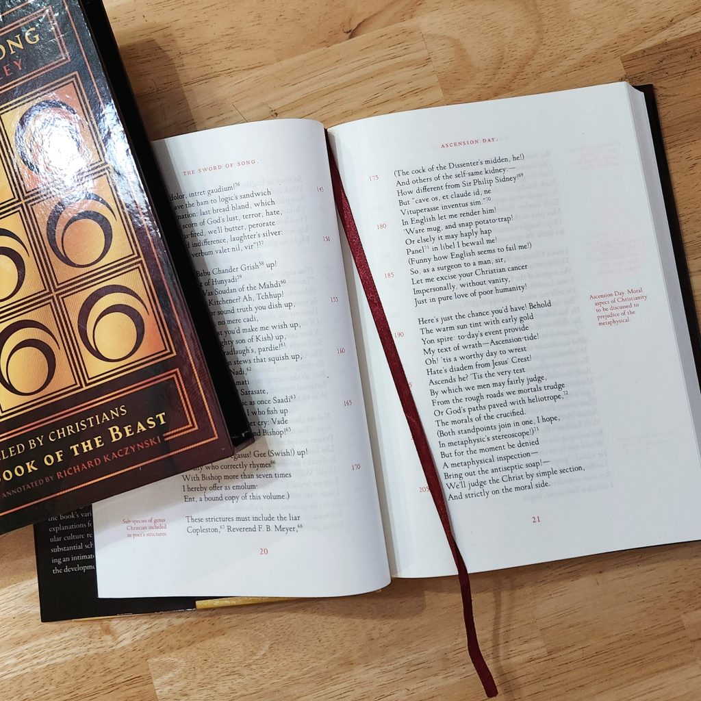May I direct your attention to “The Sword of Song: Called by Christians The Book of the Beast” by Aleister Crowley and edited by Richard Kaczynski. In 1904 Crowley published only 100 copies of this text, but Kaczynski researched all existing draft manuscripts and examined previously unpublished margin notes from Crowley’s personal copy to present Crowley’s preferred text for “The Sword of Song.” Filled with essays, poetry, and fiction, Kaczynski shows this work as a prototype for the later work to come from Crowley. This edition is fully annotated, with an in-depth introduction explaining certain references.