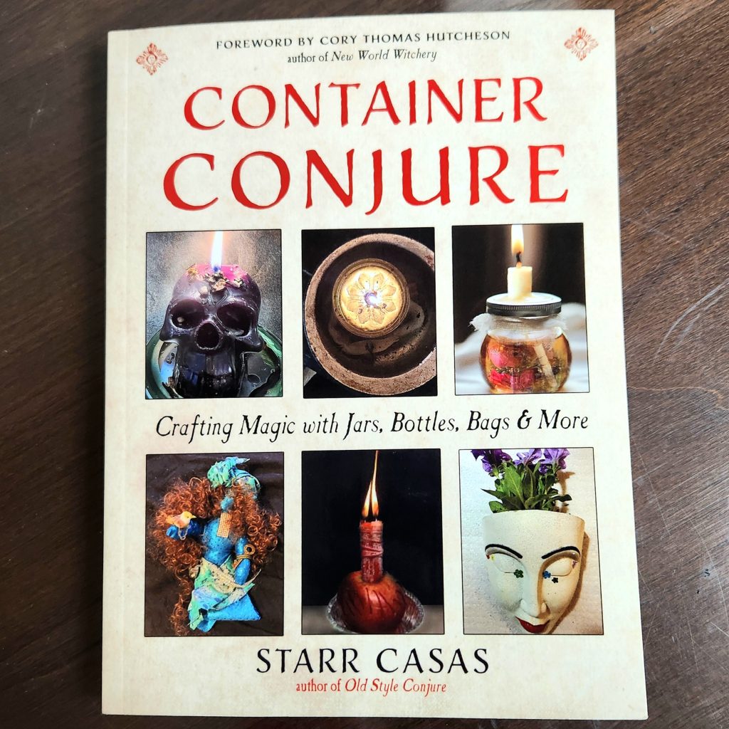 Why do I have all this stuff? For when books like “Container Conjure: Crafting Magic with Jars, Bottles, Bags, & More” by Starr Casas come along. To call “Container Conjure” an inspiration to a magical magpie like myself is an understatement. Sure, I’ve made a mojo bag or protective jar on occasion, but Casas opened my eyes to many unexplored opportunities.